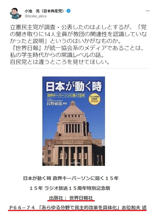 スレッドタイトル : 「我々と近い」旧統一教会、政治家との関係アピール 高市氏にも言及