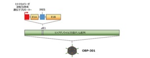 テロメライシン(OBP-301)がテロメラーゼ活性の高い細胞(宿主細胞)に感染すると、そのヒトテロメラーゼ逆転写酵素遺伝子プロモーターが活性化